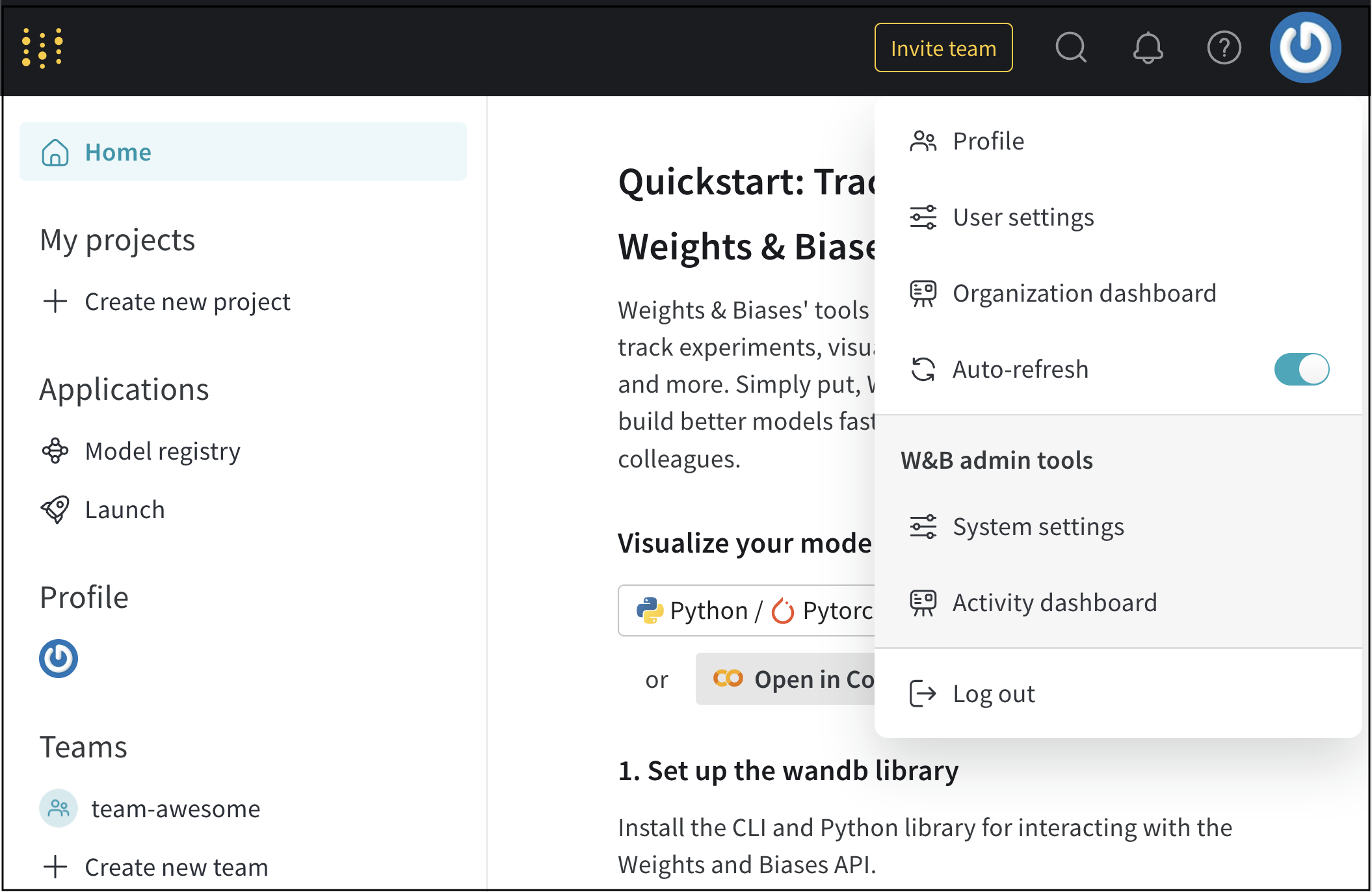 1. W&B Organizationダッシュボードに移動します。