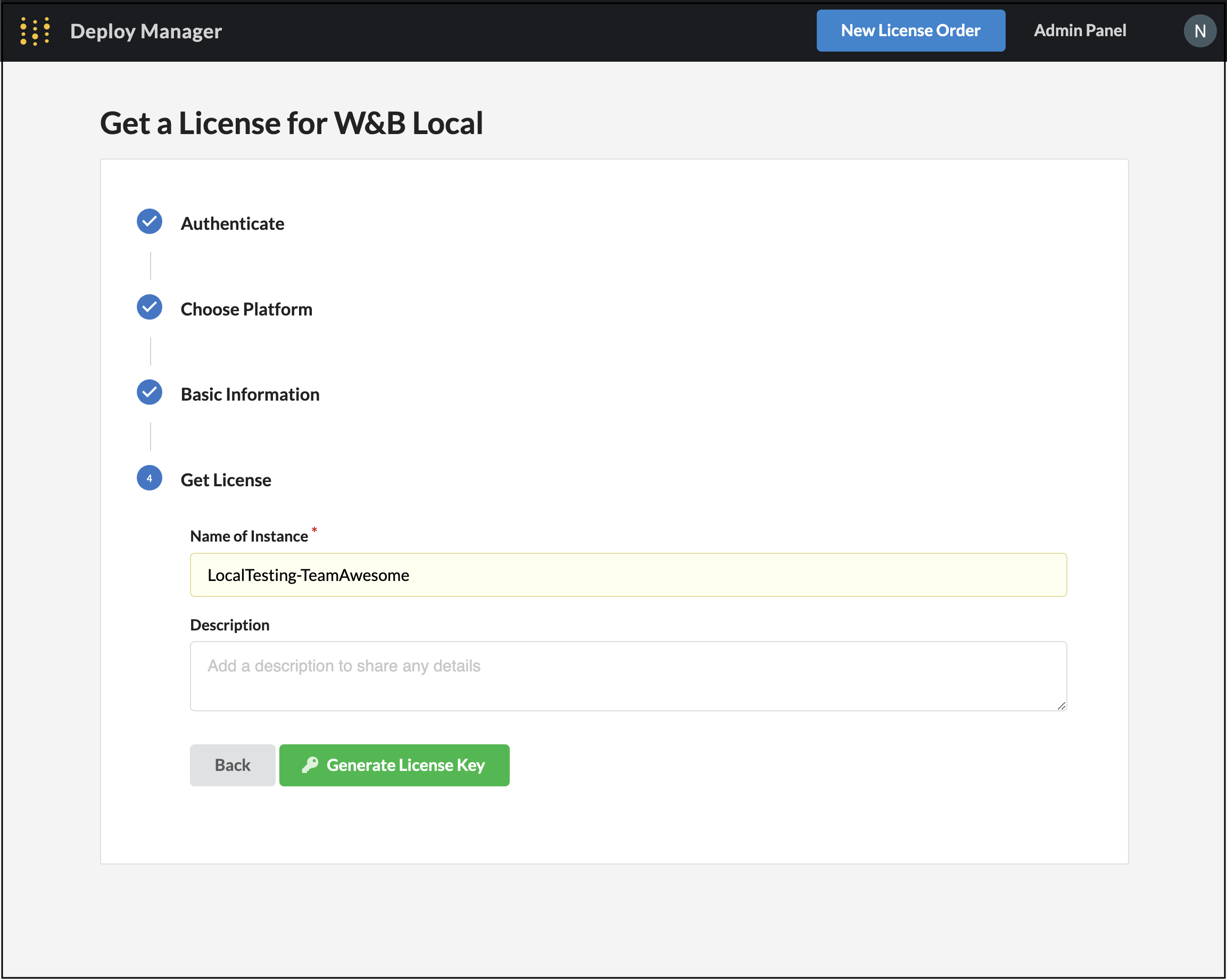 https://deploy.wandb.ai/DeploymentIDに直接アクセス。このDeploymentIDはライセンスインスタンスに割り当てられた一意のIDです。