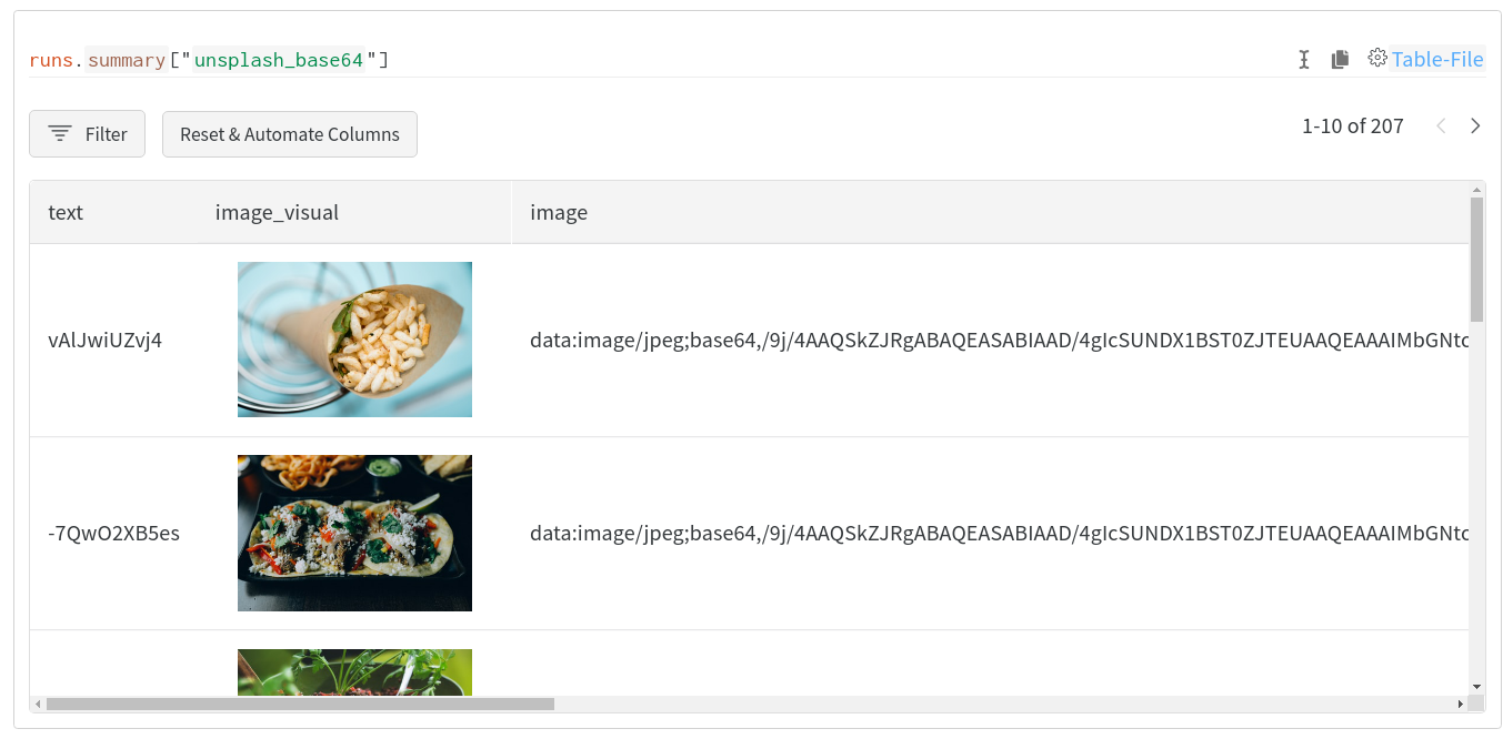 W&B は、自動的に画像や実体認識フィールドを wandb.Image および wandb.Html に変換しようとします。これらの可視化を含むために、結果のテーブルに追加の列が追加されることがあります。
