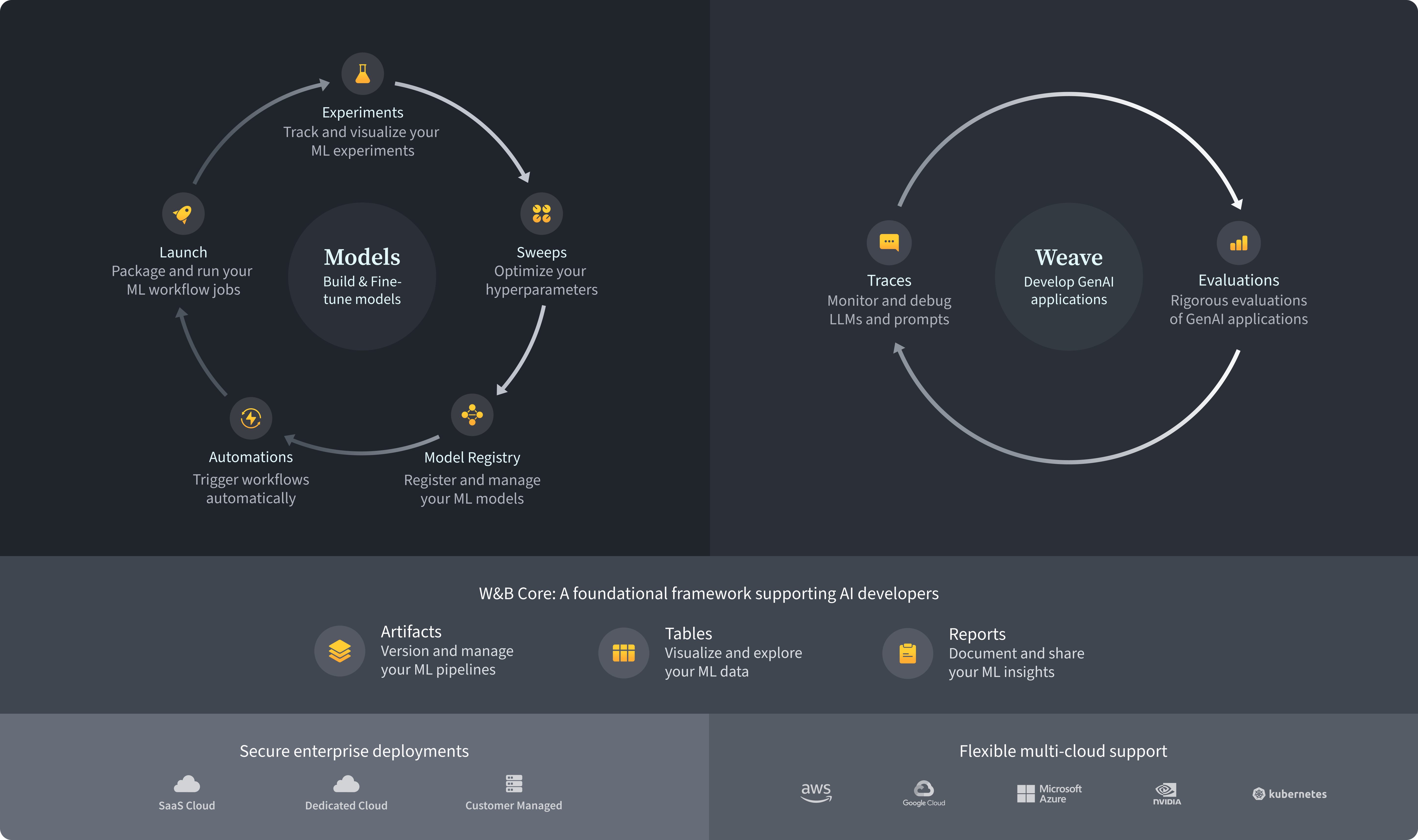 W&B Models は、モデルを整理し、生産性とコラボレーションを向上させ、大規模なプロダクション ML を提供したい機械学習エンジニアのためのシステムです。