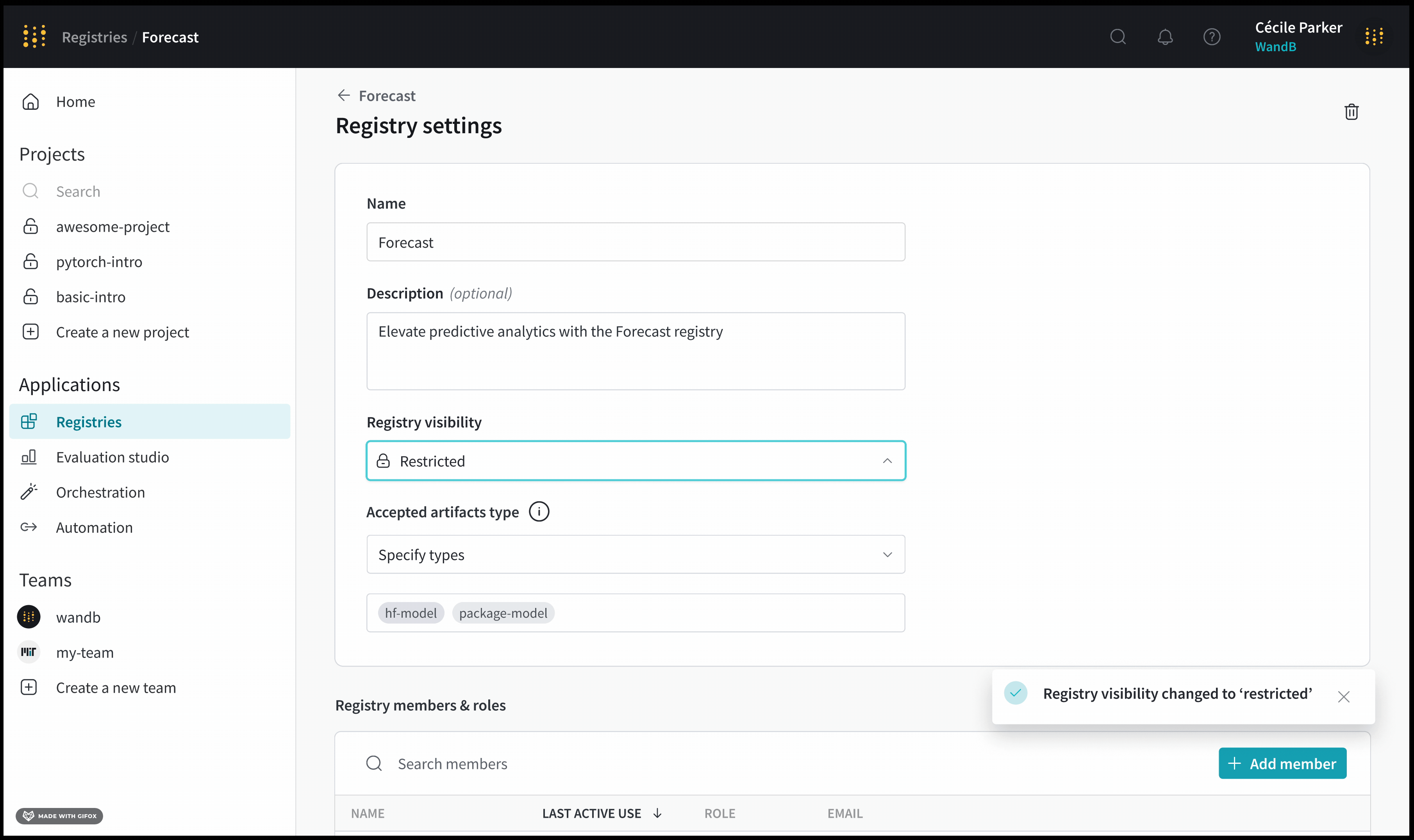 - W&B App UIの Registry アプリに移動します。