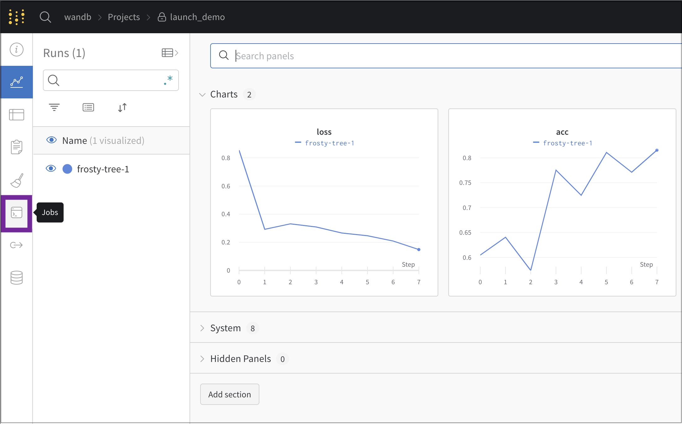 1. W&B 프로젝트 페이지로 이동합니다.